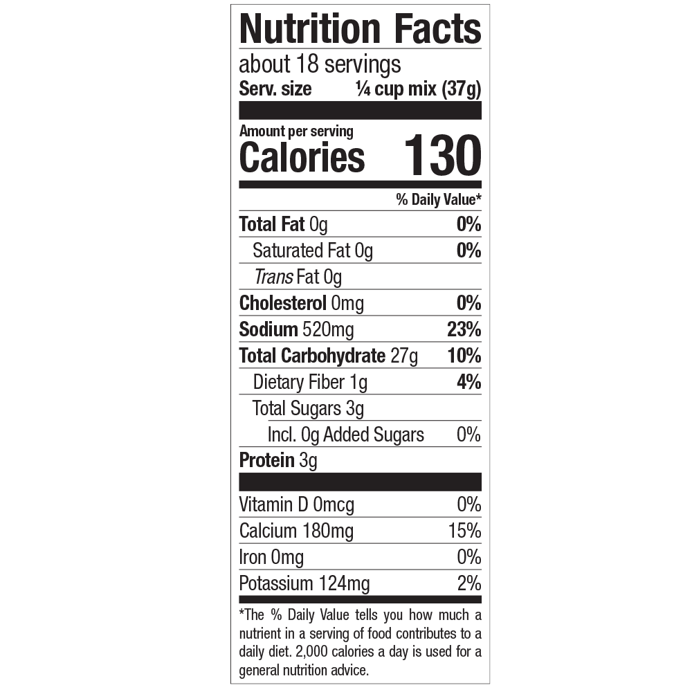 Nutrition (per 1/4 cup dry mix / 37 g)